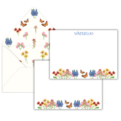 Personalized set of 25 floral watercolor notecards with envelope liner.